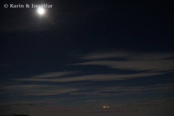 There should be according to the forecast a crazy lightshow in the sky, but the fullmoon is far too bright to see any Northernlights. So I just took some moonpics.