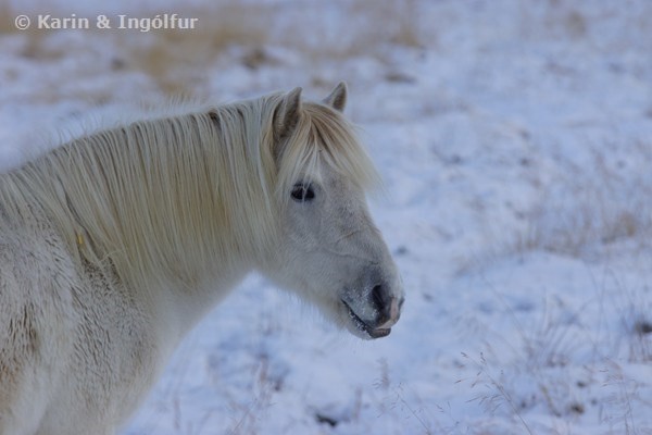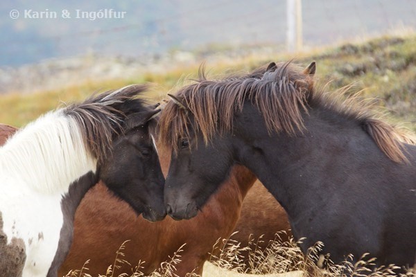 Sigtýr and "his mares" are staying at Haga at the moment and will stay there as long as there's enough grass and river Laxá doesn't flood the area. There's very good natural shelter and they are closely watched by the farmer there. Þyrnirós and her brother Þokki are still at Hólmavað, but will soon go to Ísólfsstaðir, Þokki taking a small stop-over inside to fresh up his haltertraining.